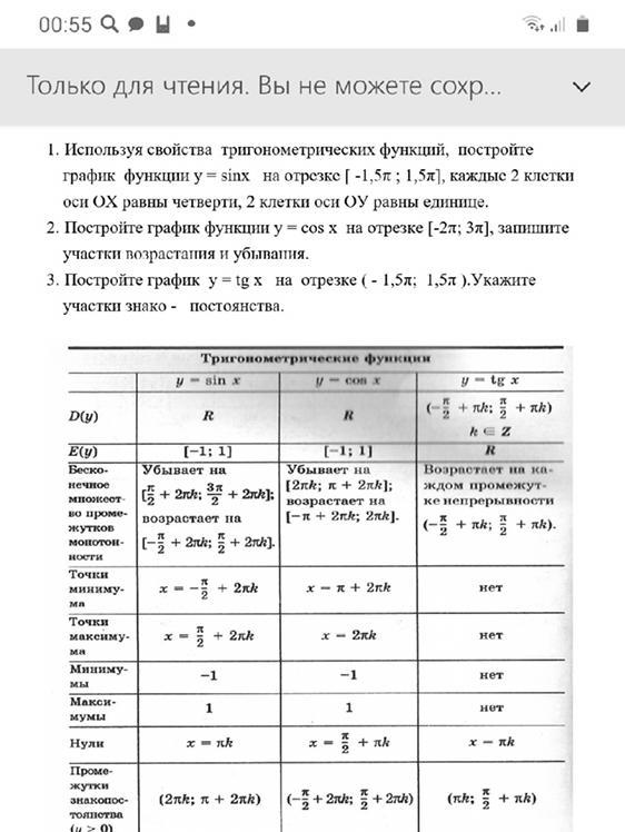 3. Постройте график у=tg х на отрезке (-1,5п;1,5п: ).Укажите участки знако - постоянство.