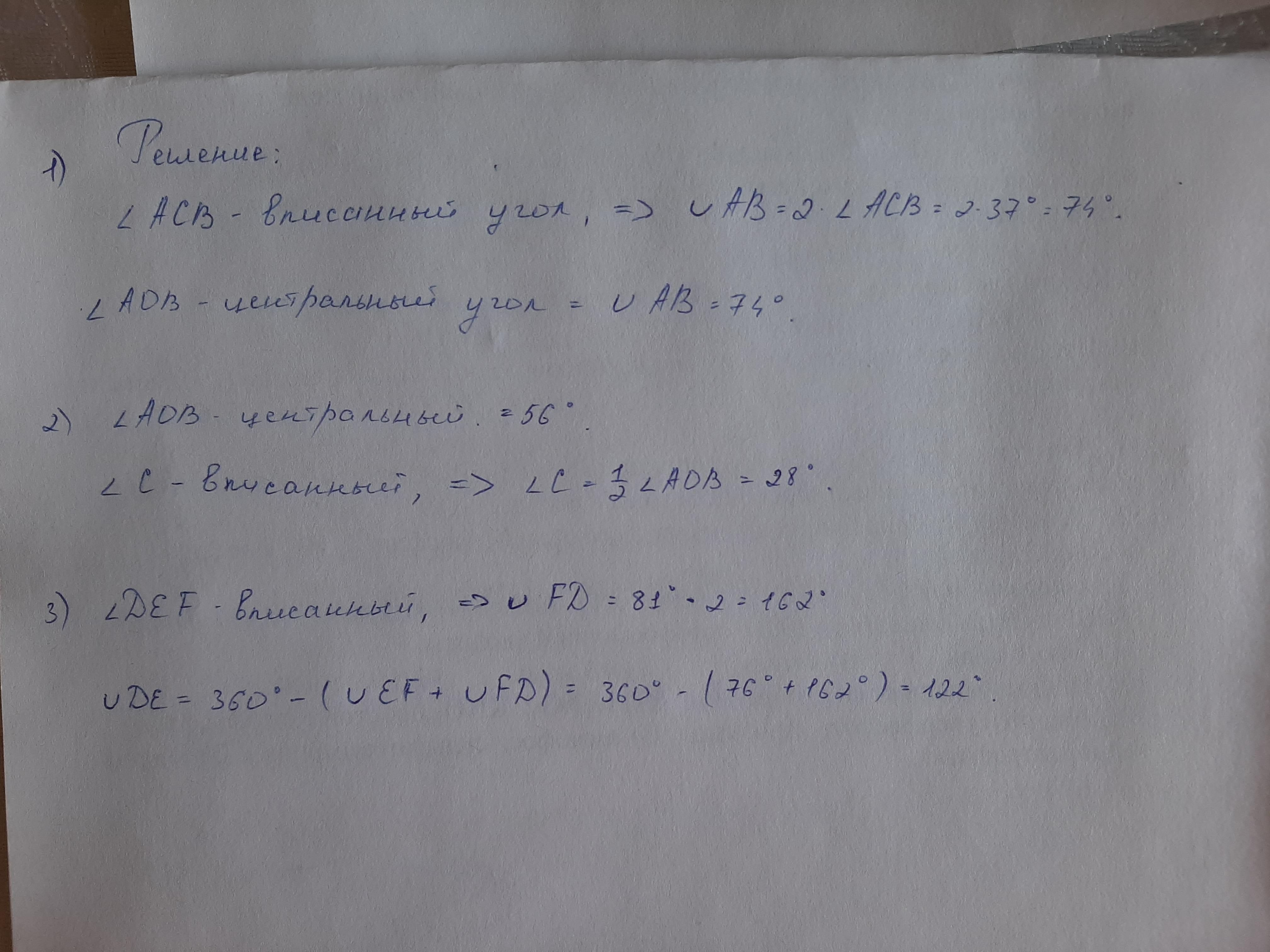 Ответ: 1. Угол АОВ = 74'.