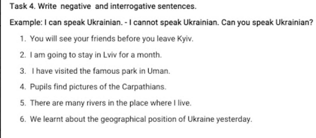 6. Yesterday we did not learnt about the geographical position in Ukraine. Yesterday you learnt about the geographical position in Ukraine?