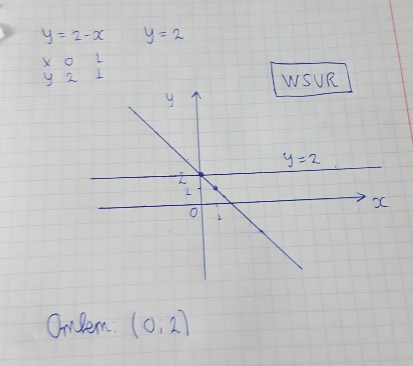 побудуйте в одній системі координат графіки функцій y=2-x і y=2 і знайдіть координати точки їх перетину