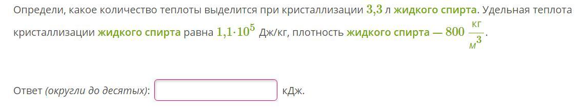 Q = 1,1 × 10^5 Дж/кг × 3,3 л × 800 кг/м³ = 2904 × 10^5 = 290400 кДж