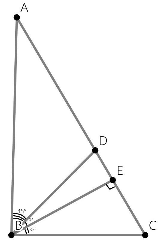 Кут між висотою і бісектрисою, проведений з вершини прямого кута прямокутного трикутника, дорівнює 8 градусів. Знайдіть гострі кути трикутника.