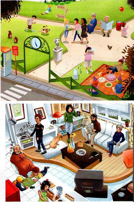 2 Here you can see….Кого видите здесь, где находятся люди, какое время года, какая погода, как одеты и почему, что собираются делать и что делают в данный момент. Какие другие объекты есть на картине/Что еще есть на картине и какого цвета/ размера/ формы. Настроение людей.
