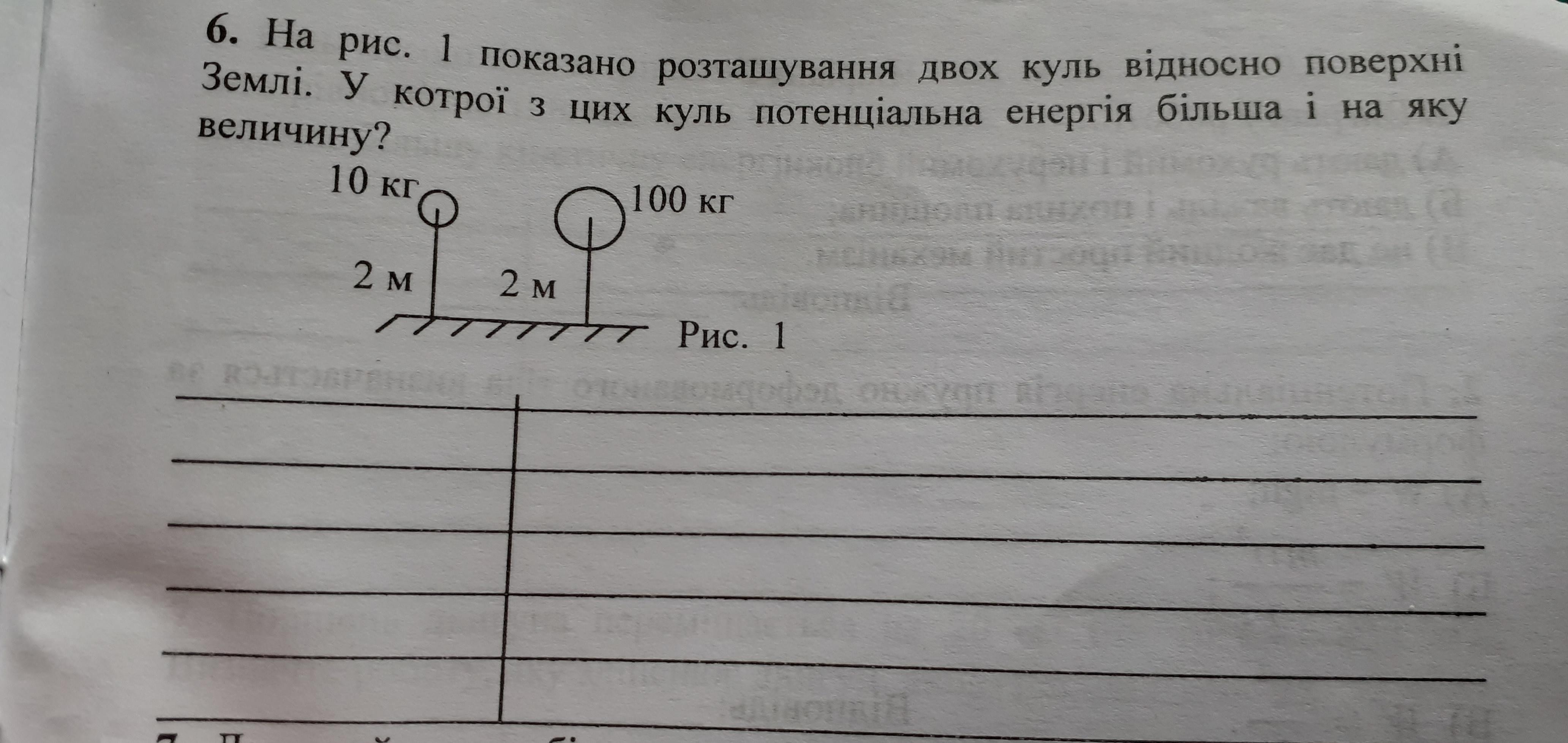 на рис.1 показано розташування двох куль відносно поверхні Землі.У которої з цих куль потенціальна енергія більша і на яку величину?