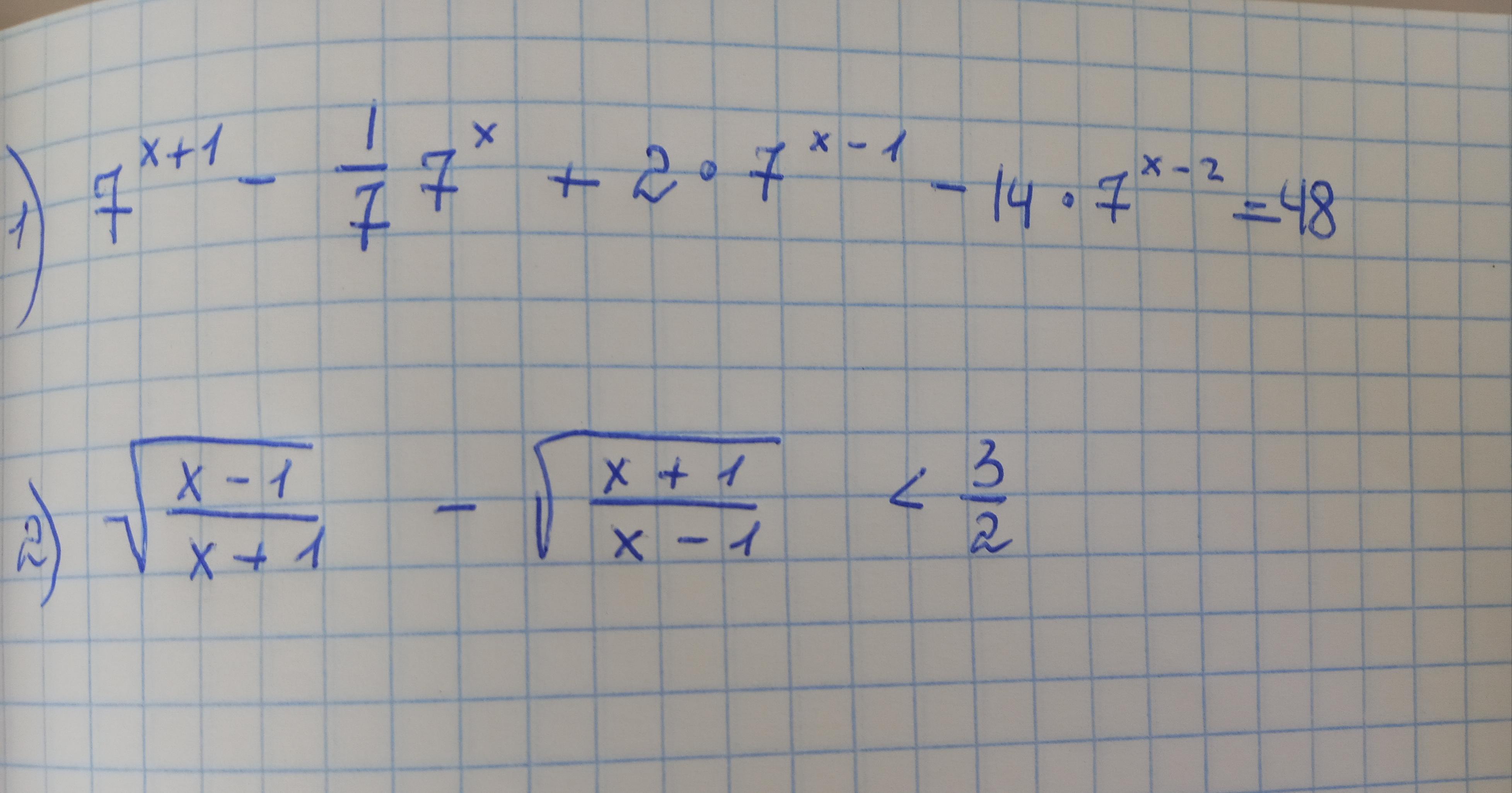 1). 7^x-1-1/7*7^x+2*7^x-1-14*7^x-2=48