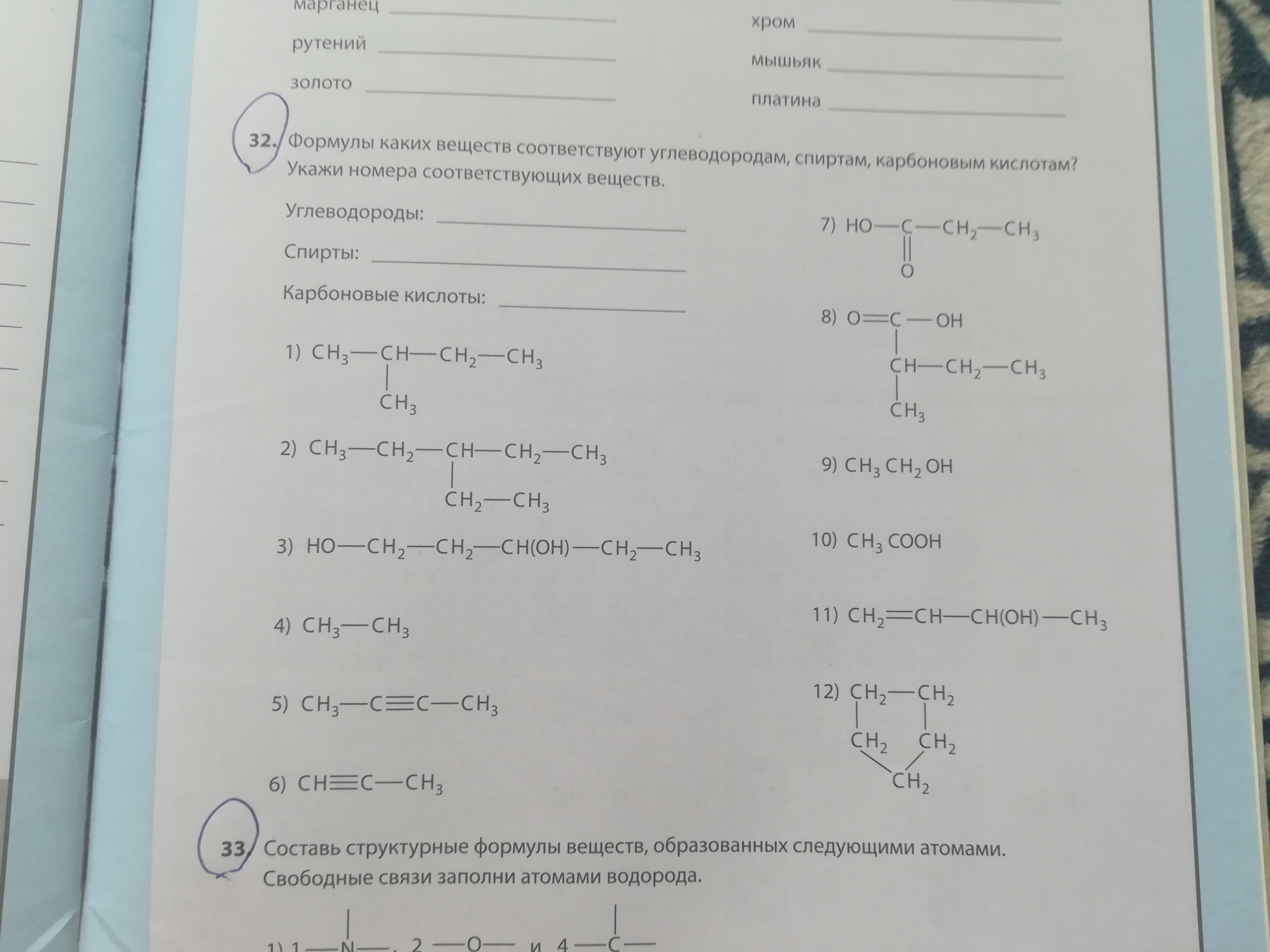 Углеводороды: 1, 2, 4, 5, 6, 12