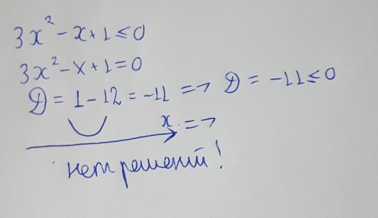 Скільки цілих розв'язків має нерівність 3x²-x+1≤0?