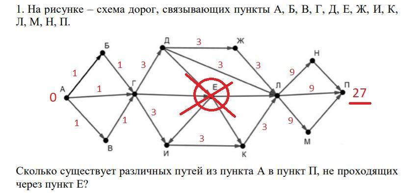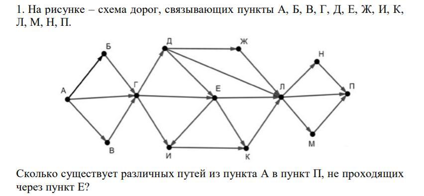 1. На рисунке – схема дорог, связывающих пункты А, Б, В, Г, Д, Е, Ж, И, К,