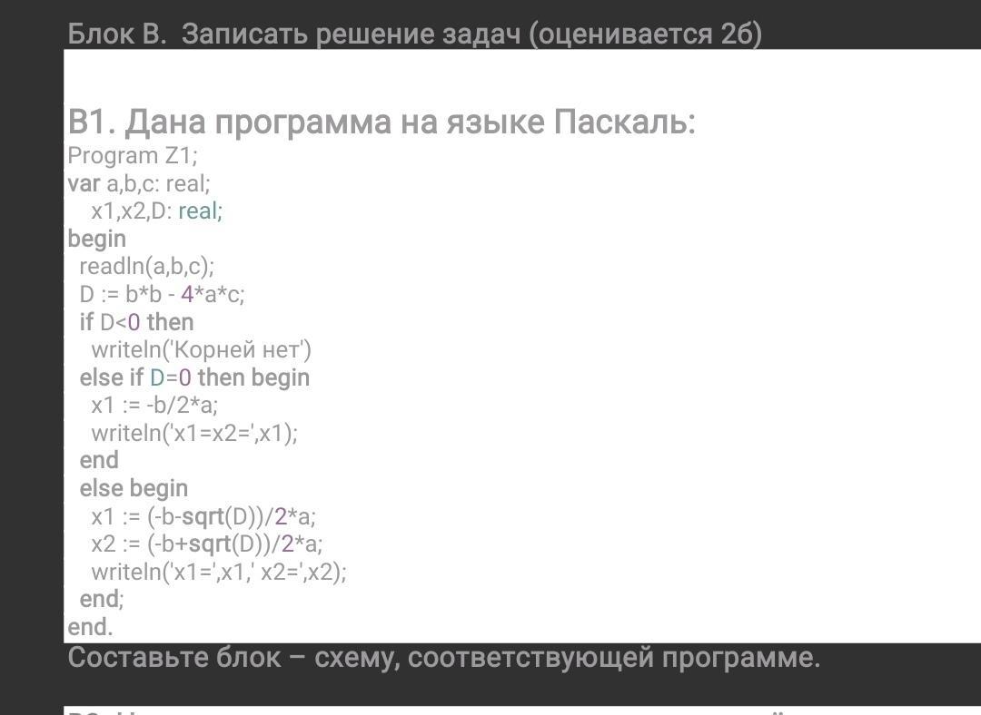 ДАНА ПРОГРАММА НА ЯЗЫКЕ ПАСКАЛЬ. СОСТАВЬТЕ БЛОК-СХЕМУ, СООТВЕТСТВУЮЩЕЙ ПРОГРАММЕ .