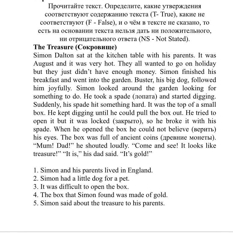 Определите какие утверждения соответствуют и не соответствуют содержанию текста(T-true,F-false),и о чем в тексте не сказано(NS- Not stated)