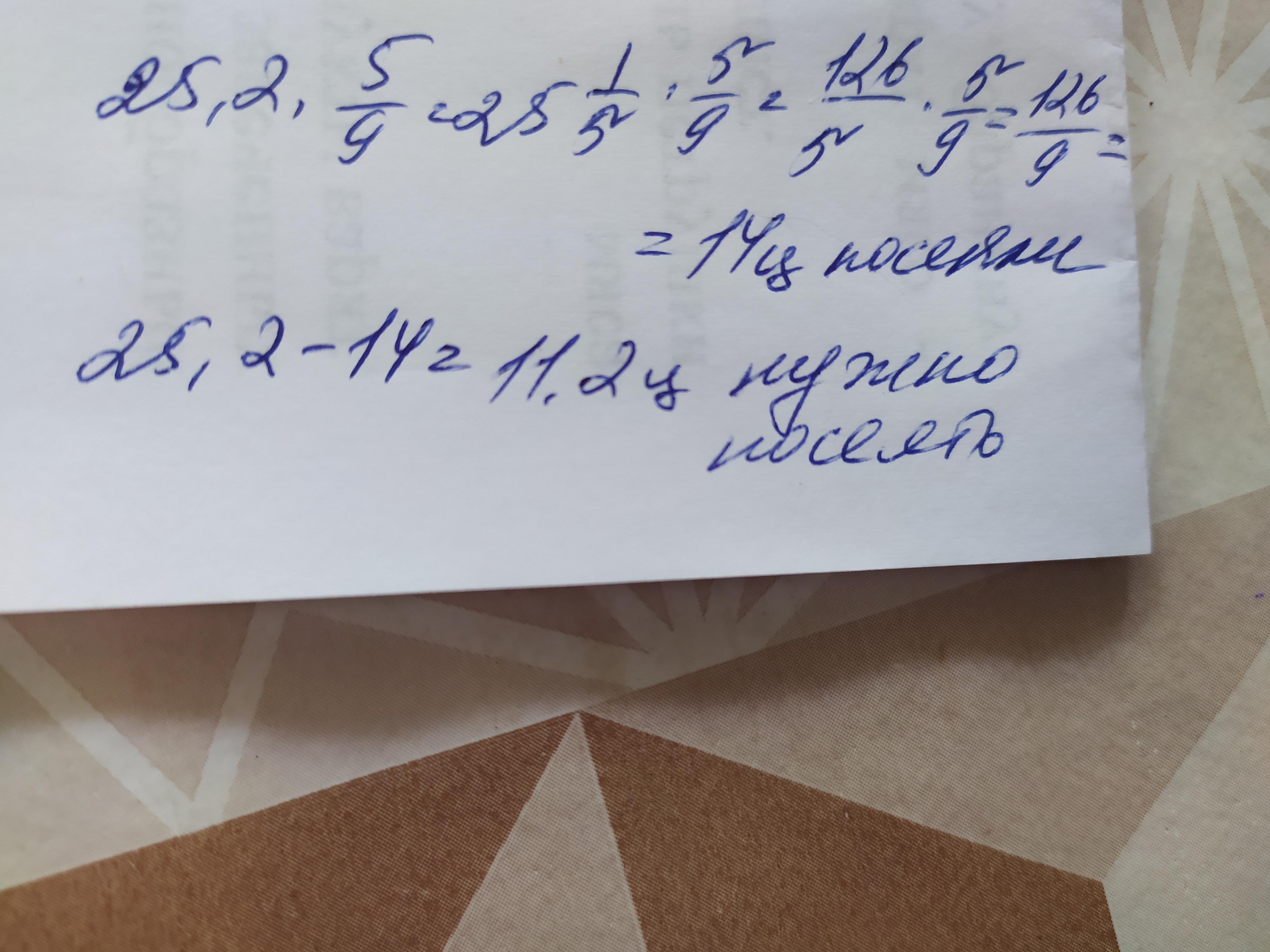 Для посіву було заготовлено 25,2 ц насіння. У перший день посіяли 5 цілих і 9 дисятих усього насіння. Скільки центнерів насіння ще потрібно посіяти?
