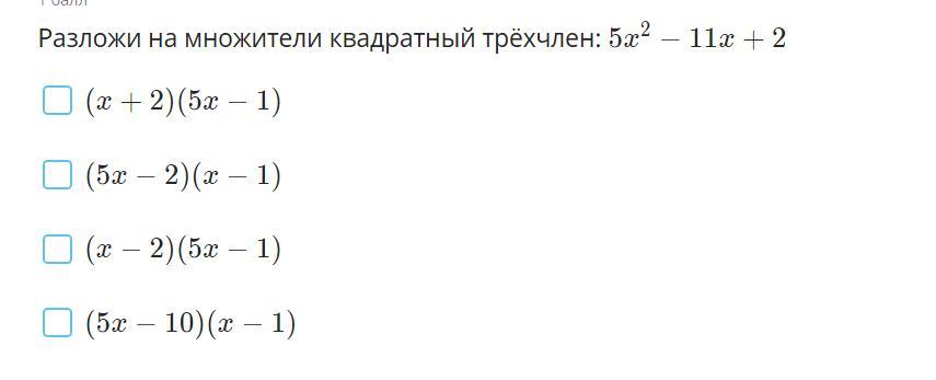 5х^2-11х+2=(х-2)(5х-1)