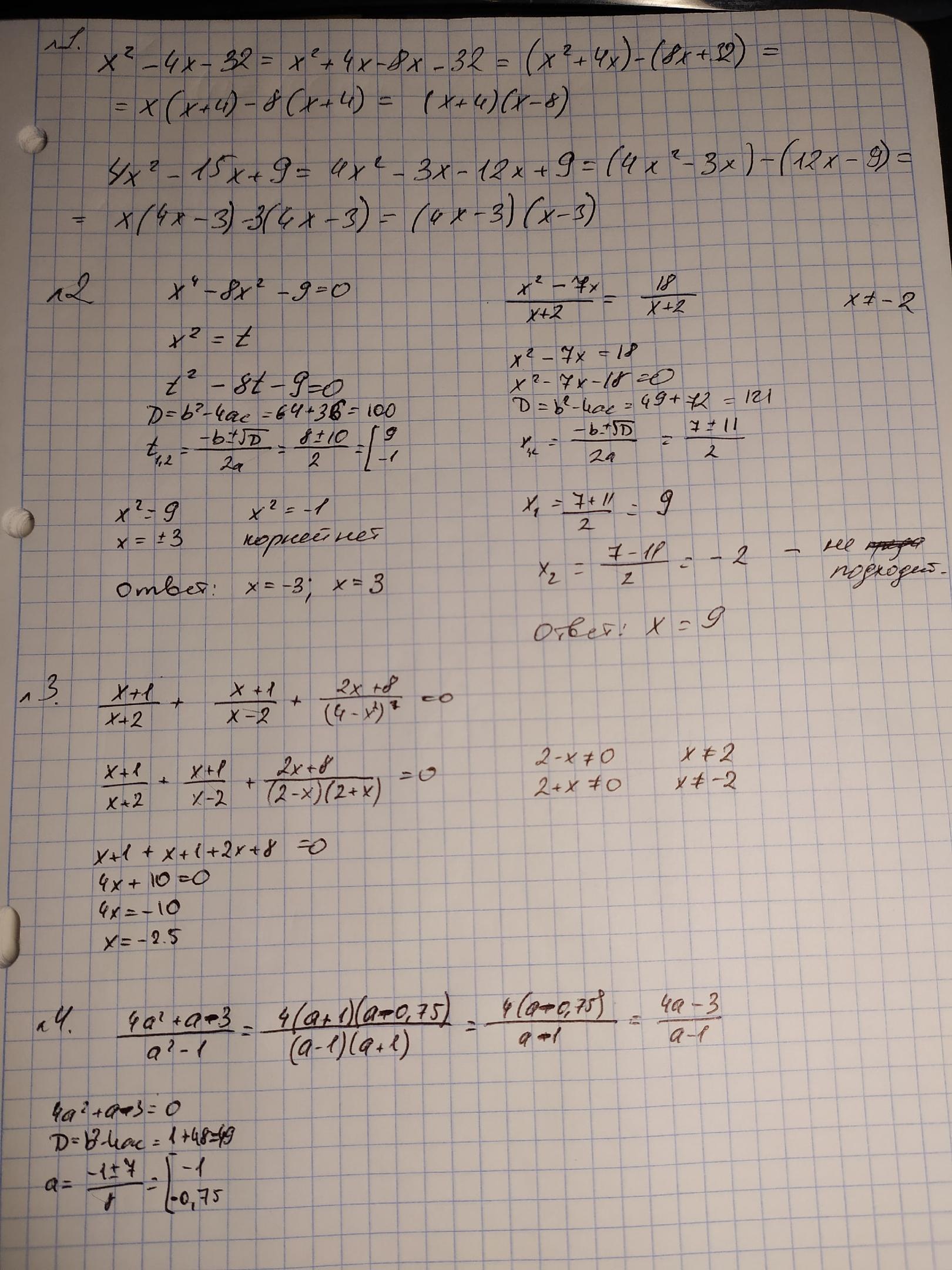 2.Розв`яжіть рівняння: 1) х4-8х²-9=0 2) х²-7х/х+2=18/х+2