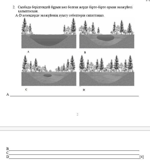 A-D кезеңдерде экожүйенің ауысу себептерін сипаттаңыз!Помогите пожалуйста у меня ТЖБ!!
