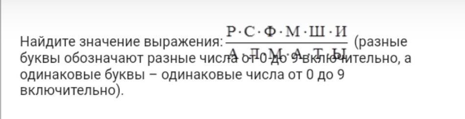 Р×С×Ф×М×Ш×И / А×Л×М×А×Т×Ы ( разные буквы обозначают разные числа