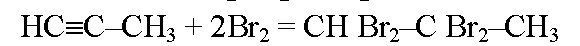 2. Пропин реагирует с бромом с образованием 1, 1, 2, 2 - тетрабромпропана. (Реакция в приложении);