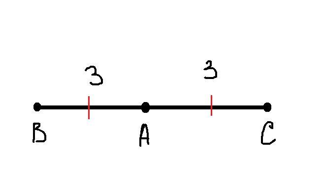 Точка А лежить на відрізку ВС, причому АВ = АС = 3 см. Виберіть правильне твердження:
