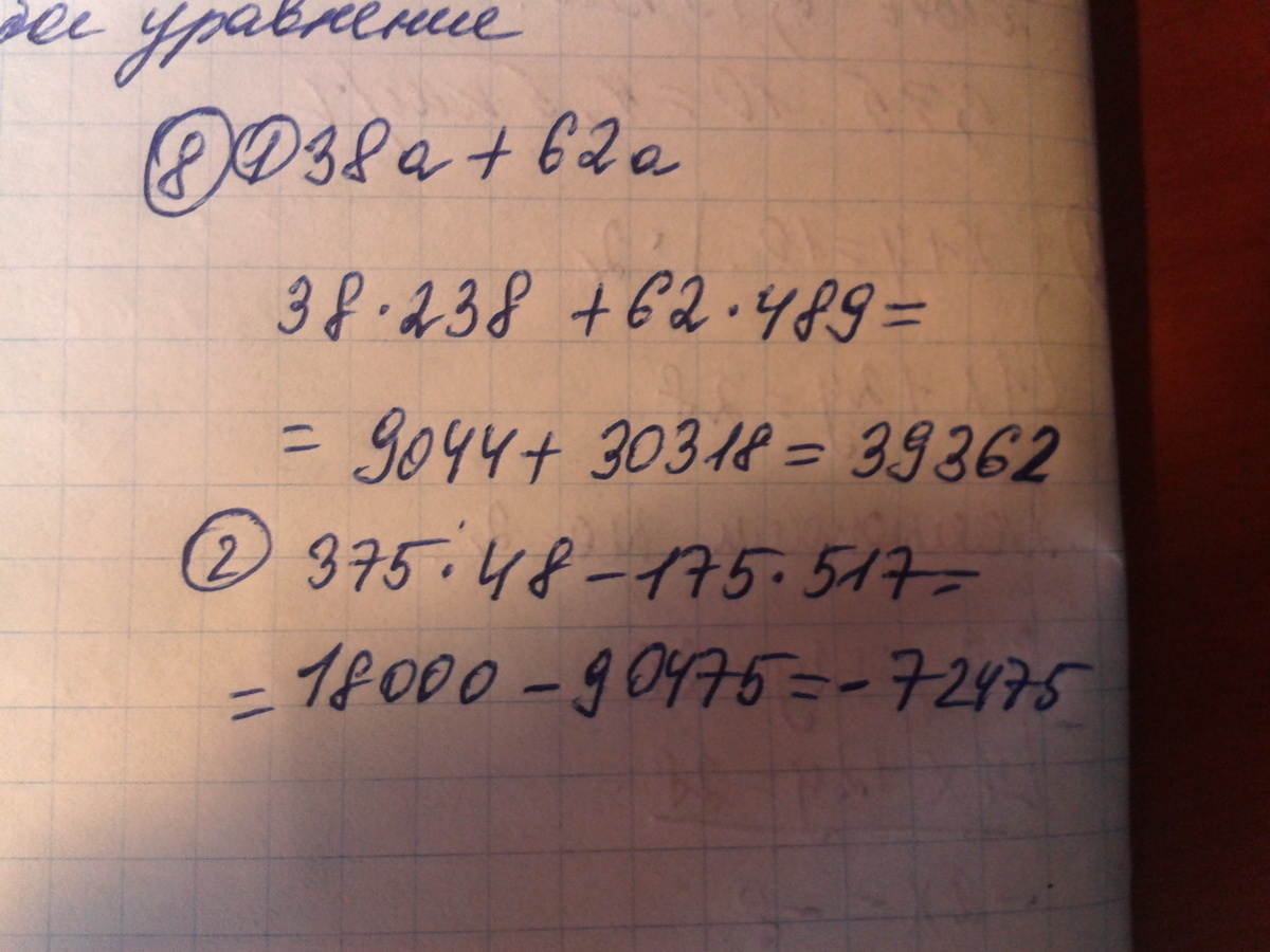 а)38*238+62*238=9044+14756=23800 38*482+62*482=18316+29884=48200 б)375*48-175*48=18000-8400=9600 375*517-175*517=193875-90475=103400