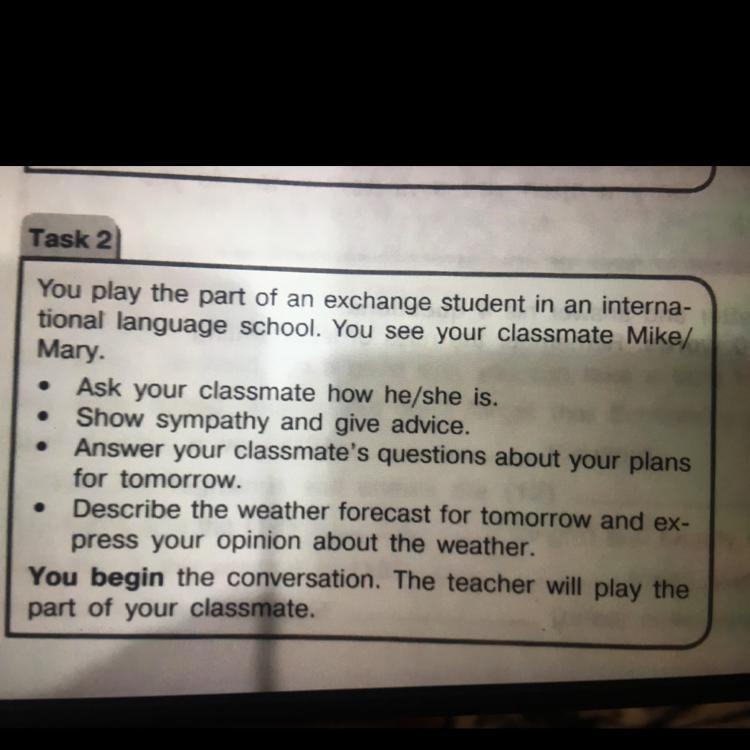Ответ: Вы играете в игру с учеником в языковой школе. Вы замечаете своего одноклассника Майка/Мэри.