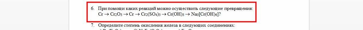 4) Cr2(SO4)3 + 12NaOH = 2Na3[Cr(OH)6] + 3Na2SO4