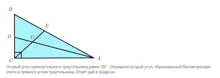 В треугольнике СОА ∠ОСА = 45°, ∠ОАС = 29:2 = 14,5°. =>