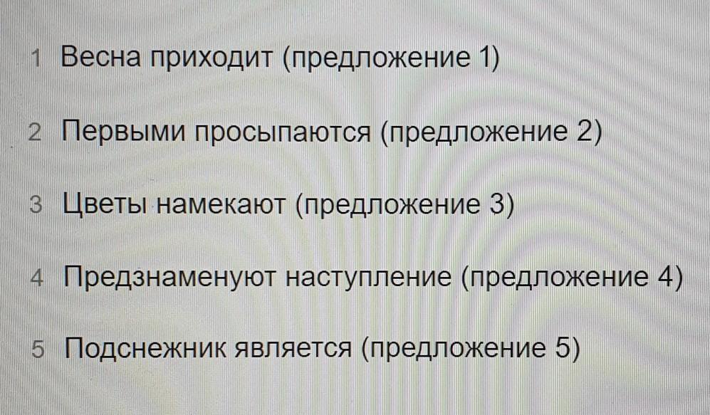 (1)Весна приходит в лес постепенно, оживляя каждое растение одно за другим. (2)Первыми