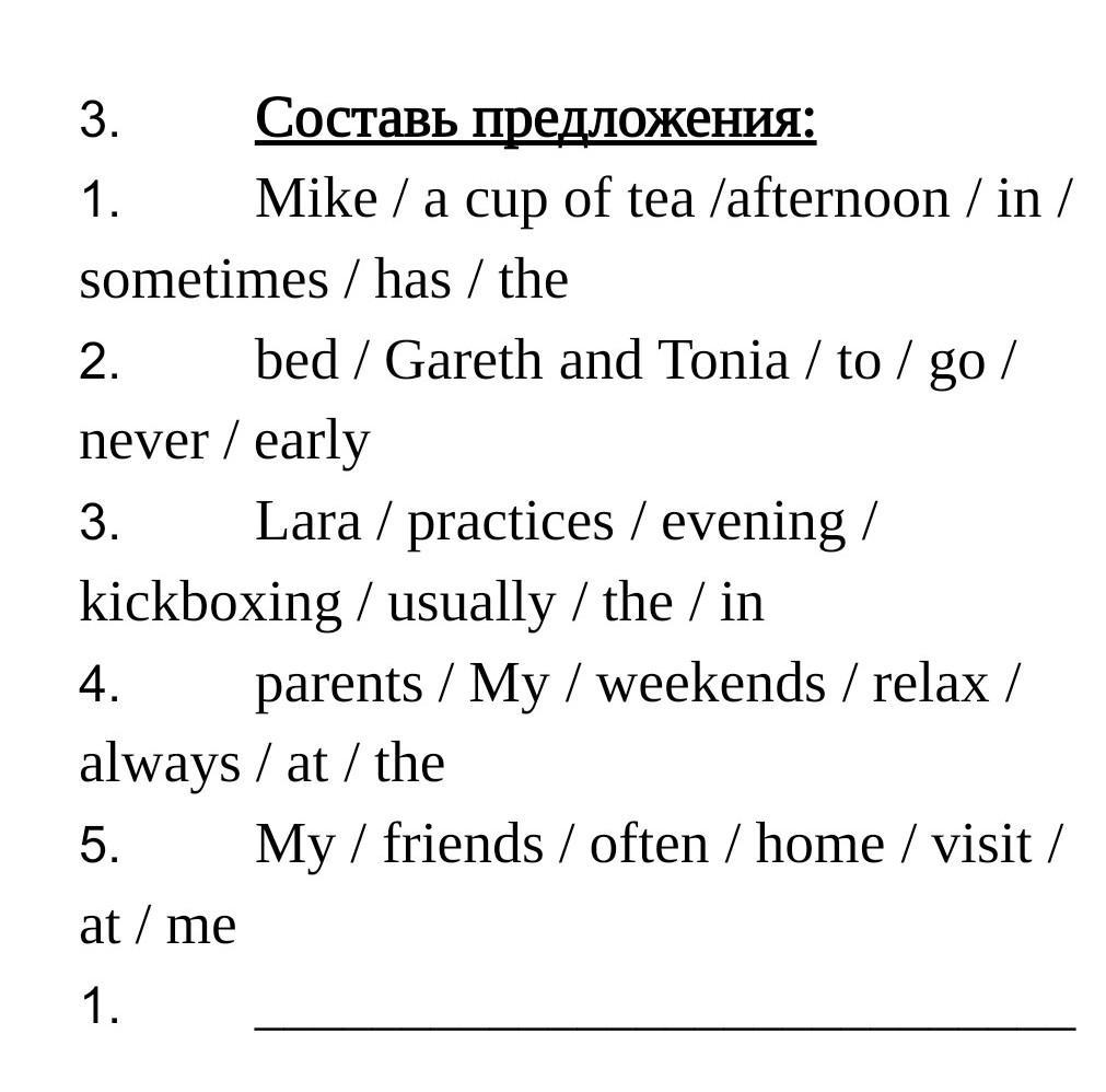 1. Mike sometimes has a cup of tea in the afternoon