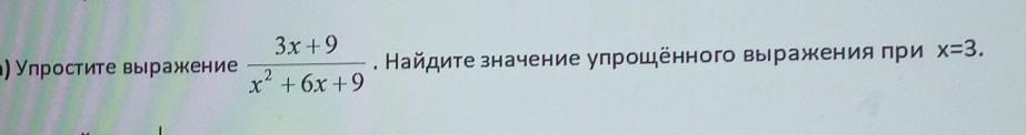 3x+9/x^2+6x+9=3x+9/(x+3)^2=3(x+3)/(x+3)^2=3/x+3=3/3+3=3/6=1/2