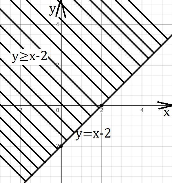 На координатной плоскости штриховкой показать множество точек, удовлетворяющих неравенству у ≥ х – 2.