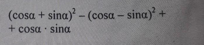 (cosa+sina)^2-(cosa-sina)^2+cosa×sina=cos^2a+sin^2a+2cosa*sina-cos^2a-sin^2a+2sina*cosa+cosa*sins=5cosa*sina