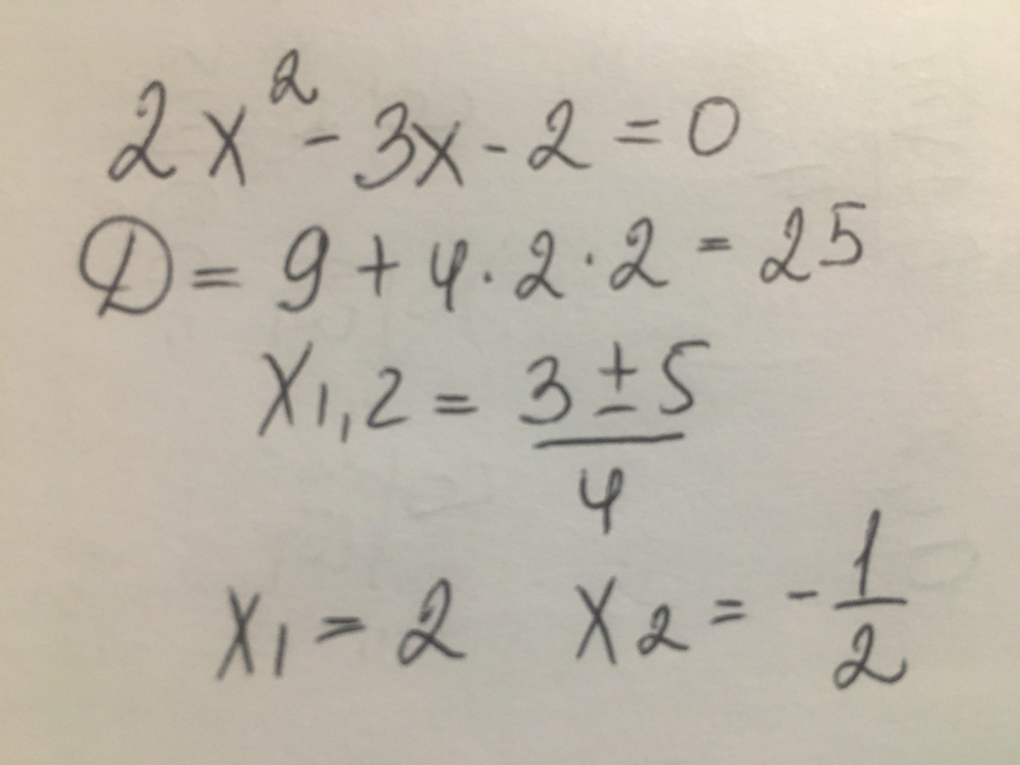 [СРОЧНО] Указать числа, которые являются корнями квадратного трехчлена 2x^2(в квадрате) - 3х - 2.