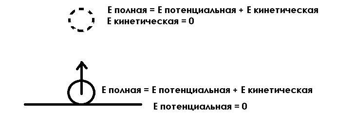 Е потенциальная + Е кинетическая (до) = Е потенциальная + Е механическая (после)