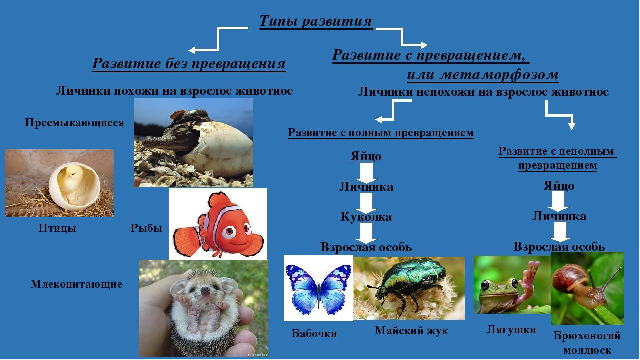 Развитие с метаморфозом наблюдается у большинства беспозвоночных жывотных, а также у некоторых позвоночных : миног , ряда рыб и земноводных
