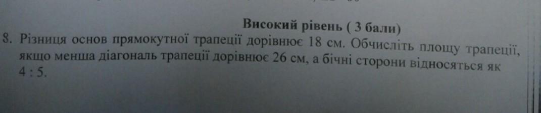 Итак,мы строим прямоугольную  трапецию ABCD(на рис).Проведем из вершины C высоту (фиолетовым цветом) и обозначим ее H.Тогда ABCH-прямоугольник,где AB=CH и BC=AH.