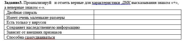 Задание3. Проанализируй и отметь верные для характеристики ДНК высказывания знаком «+», а неверные знаком «-».