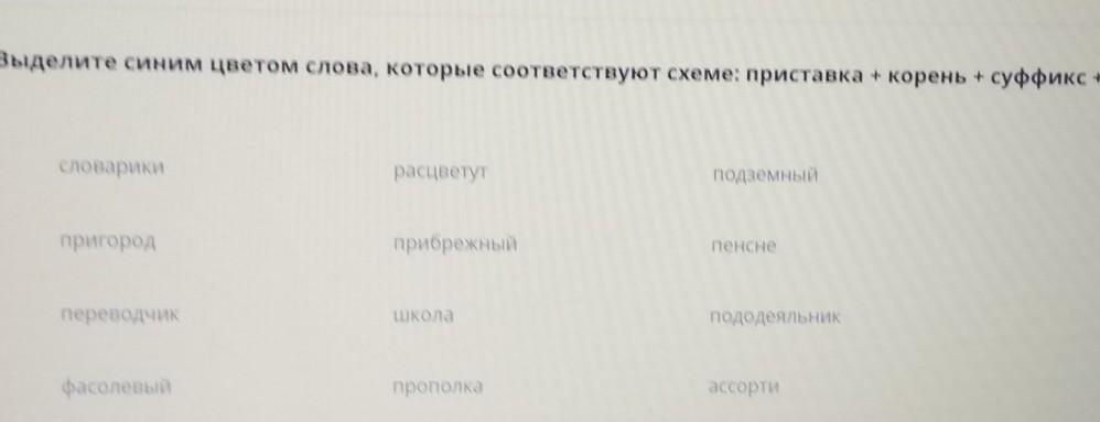 Выделите синим цветом слова , которые соответствуют схеме : приставка + корень + суффикс + окончание