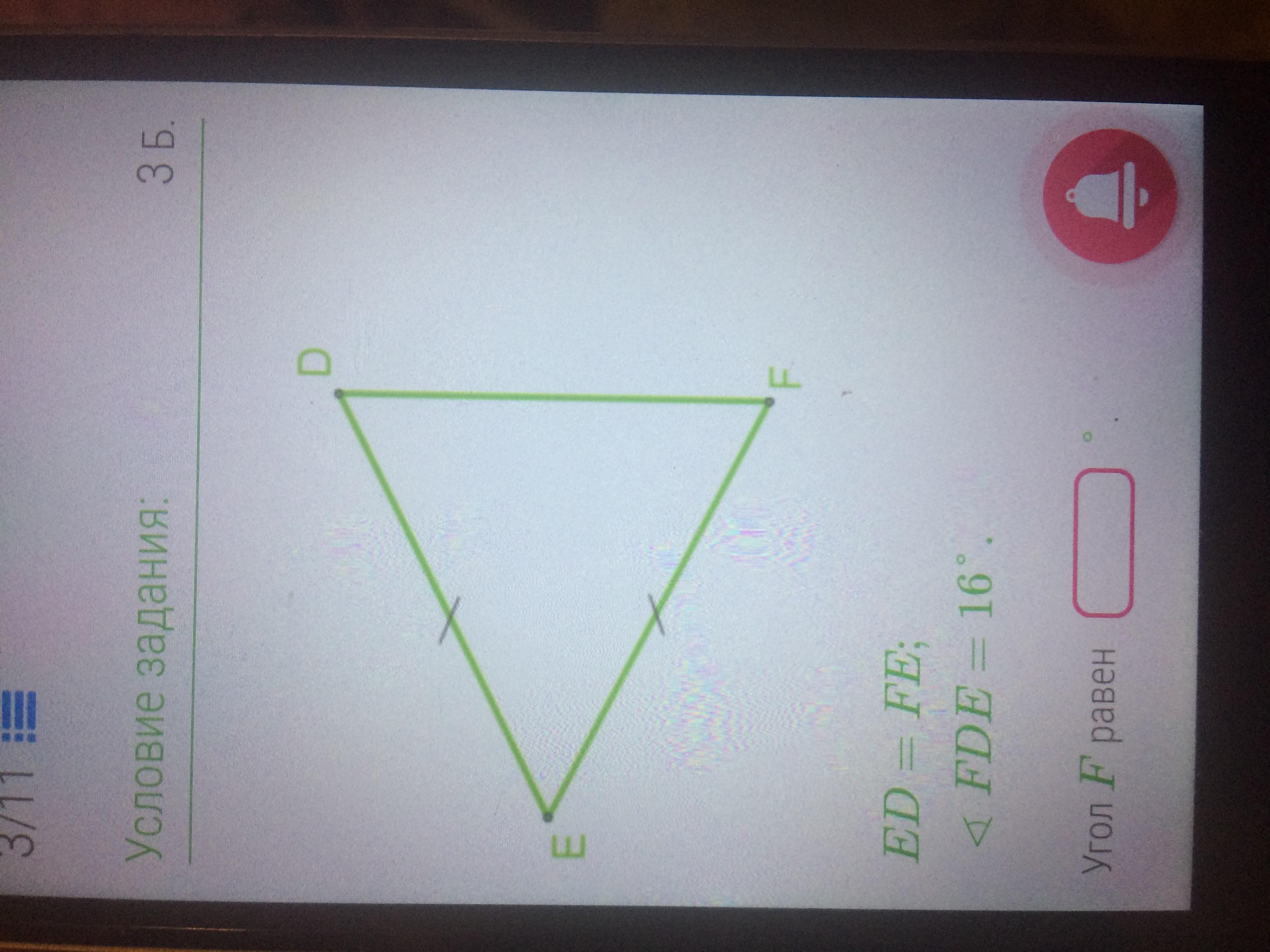 2)Треугольник EDF-равнобедренный, значит углы при основании равны. Получаем, что угол F = углу FDE = 16 градусов