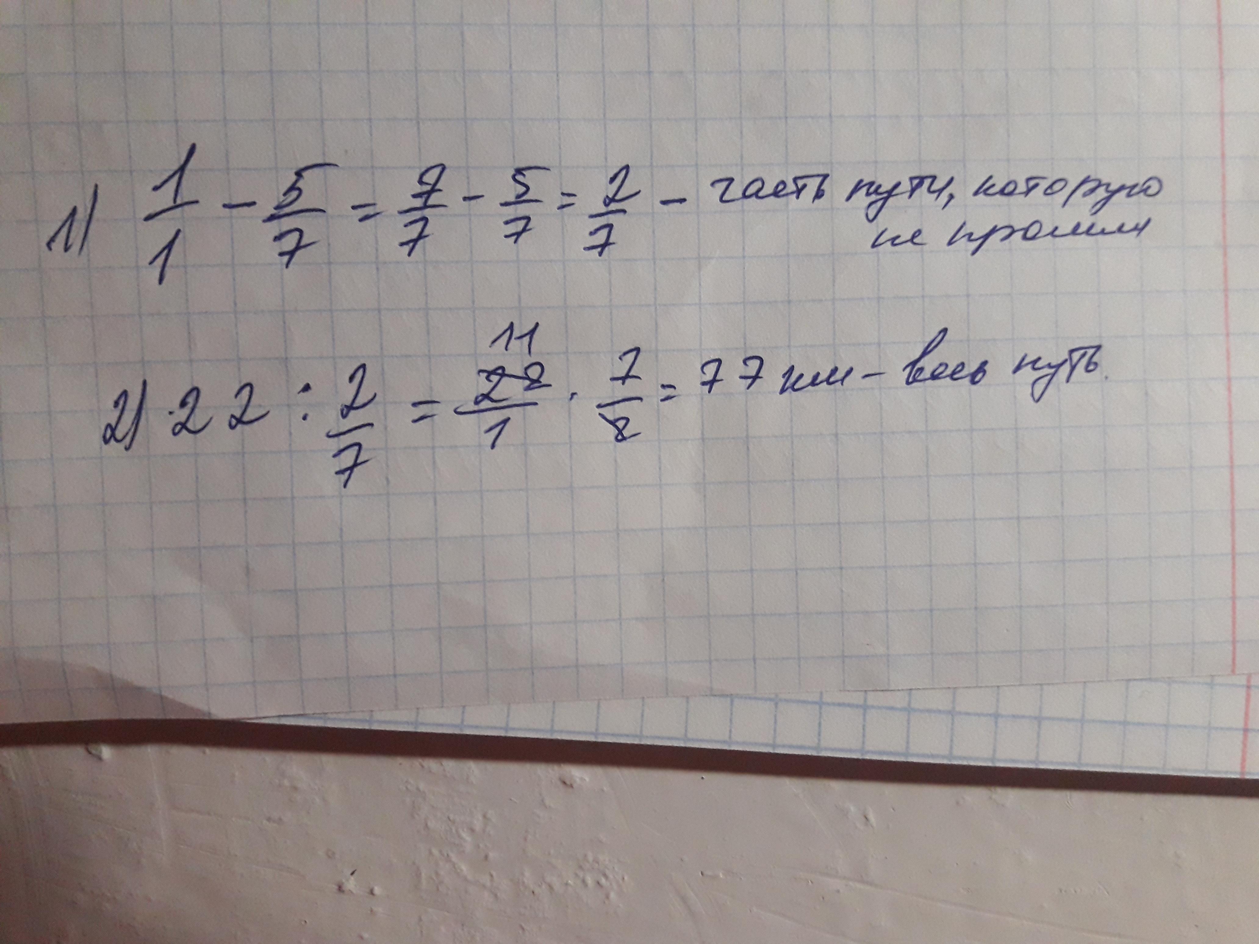 После того как туристы прошли 57 туристического маршрута, им осталось пройти 22 км.