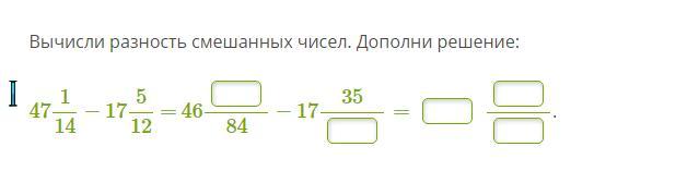 46 целых 90/84 - 17 целых 35/84 = 29 целых 55/84