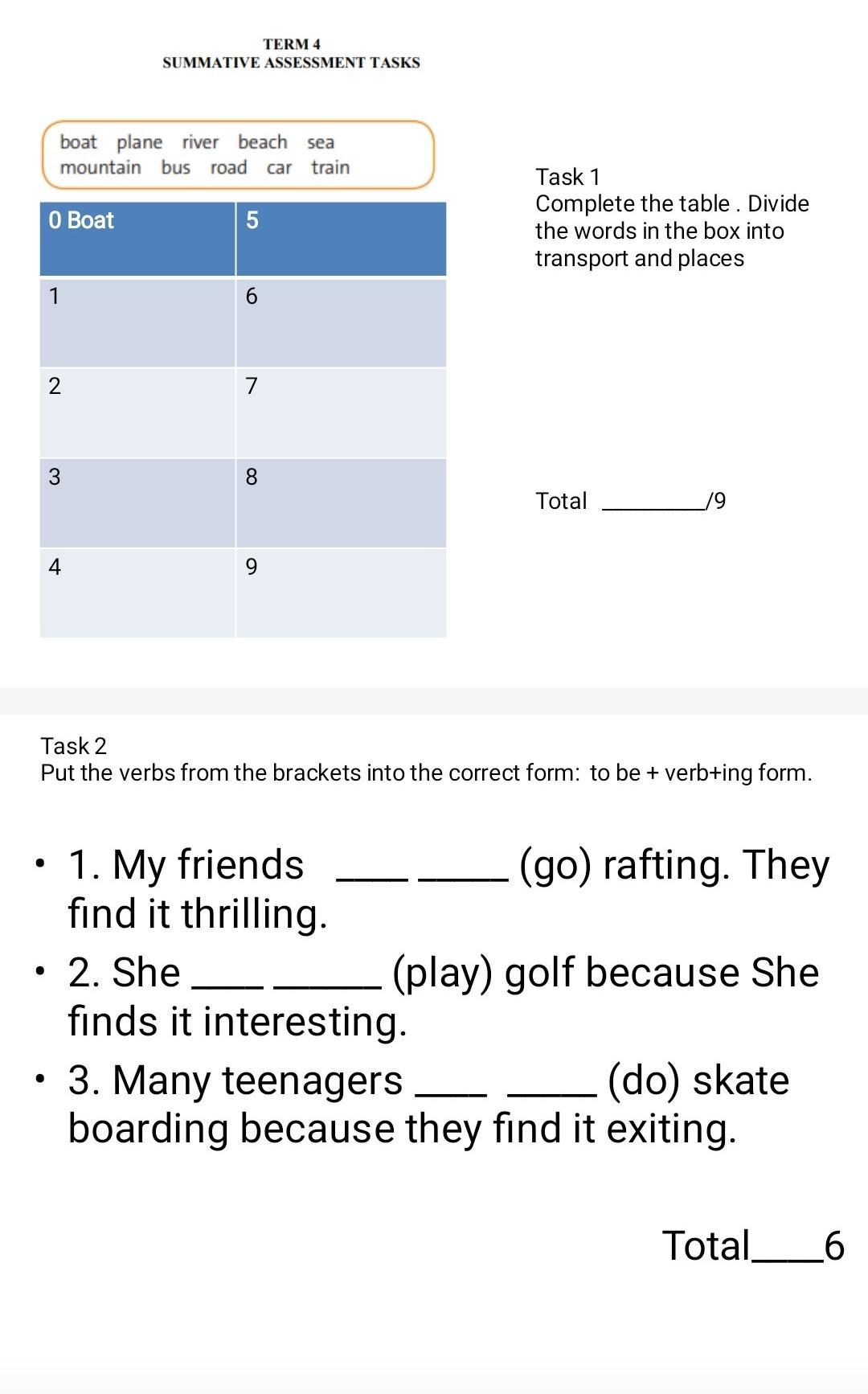 1. Complete the table. Devide the words in the box into transport and places