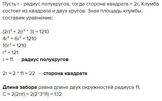 Площадь клумбы приблизительно равна 1210 м².