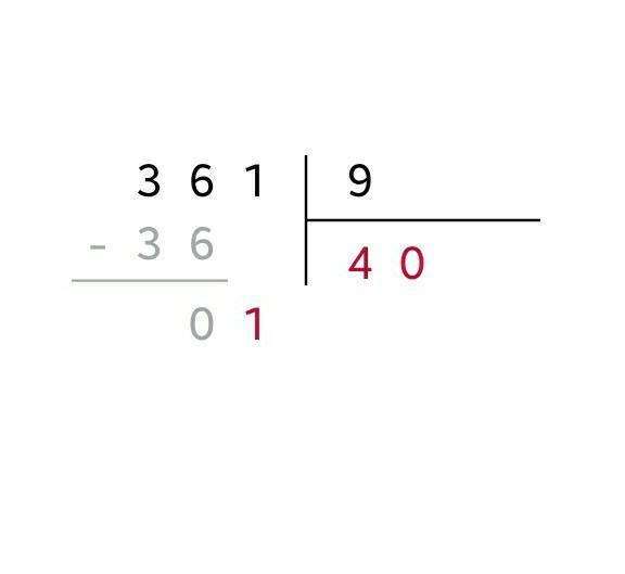 361÷9≈40,1