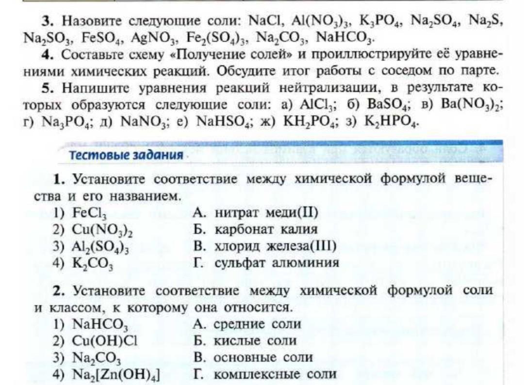 помогите по химии 8 класс ужно 3 и 5 задание и ещё тестовые задание они внизу это срочно пж сделайте