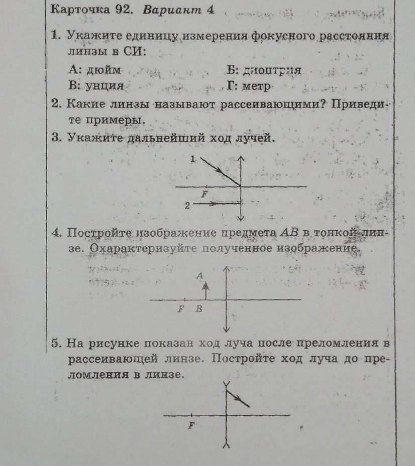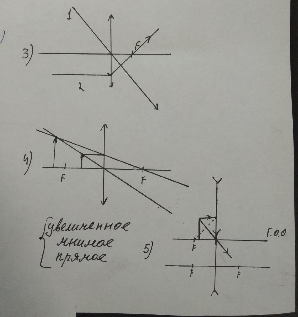 2) Падающий на линзу пучок параллельных лучей становится расходящимся после прохождения линзы. Например, плоско-вогнутая и двояко-вогнутая линзы - рассеивающие.
