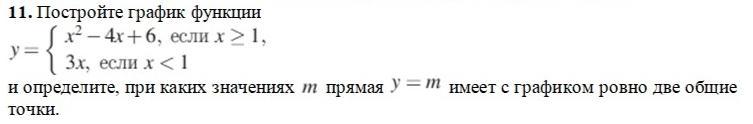 Затем, если m больше 2, но меньше 3, прямая y = m имеет с графиком 3 общие точки, а при m = 3 — две общие точки.