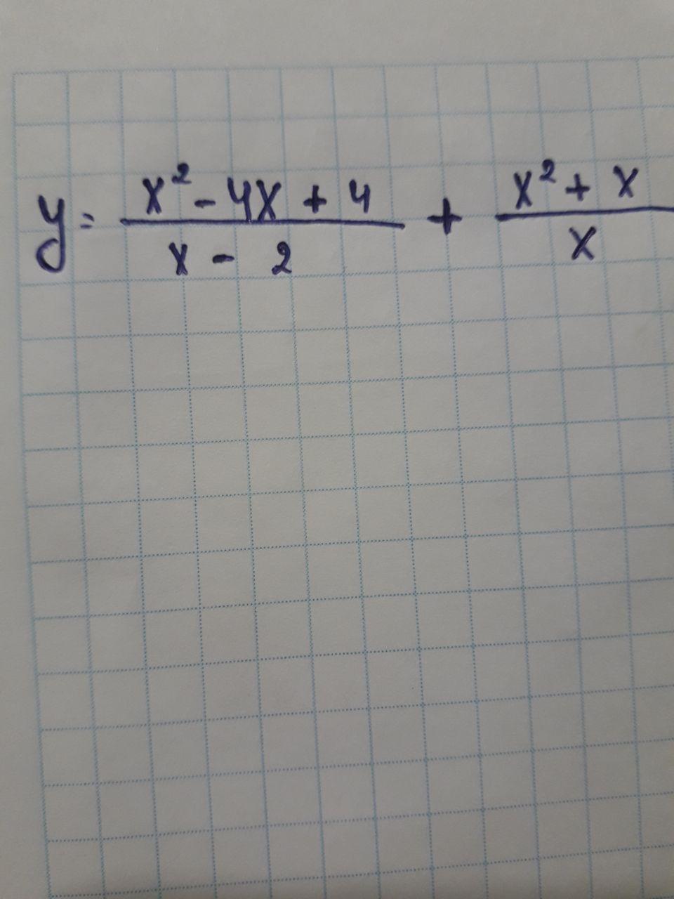 у= (х-2)^2/(х-2)+х(х+1)/х