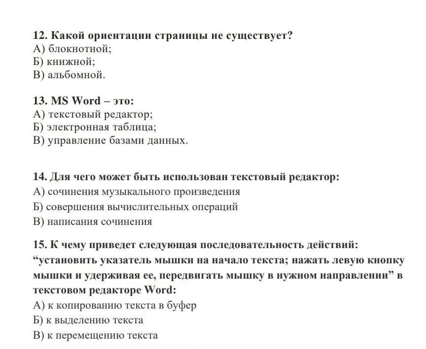 12) А; и 13) А; 14) В; 15) Б.