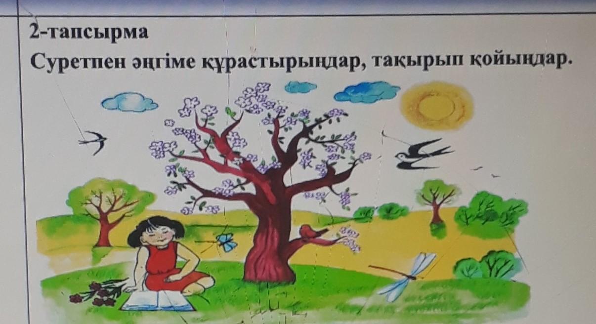 Көктемнің жайма шуақ күнінде қарлығаштар айналада ұшып жүр,ағаштар бүршік атып гүлдеп тұр.Айсана табиғаттқа шығып демалып кітап оқып отыр.Айсана табиғатқа шыққанды қатты жақсы көреді!