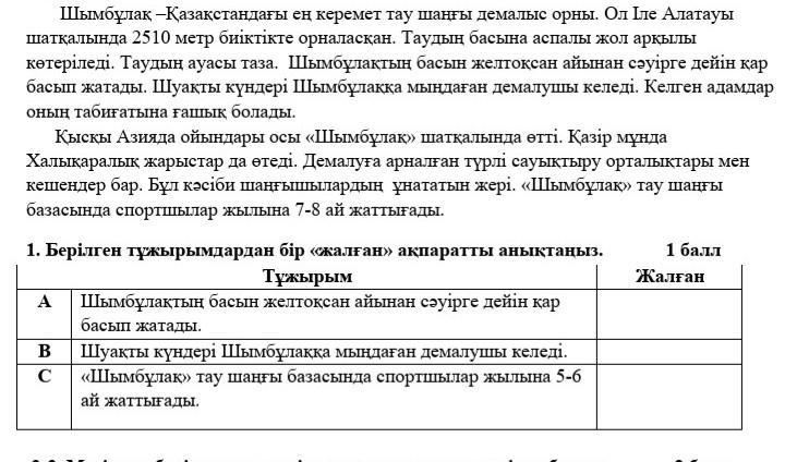 1. Берілген тұжырымдардан бір «жалған» ақпаратты анықтаңыз. СРОЧНО ПОЖАЛУЙСТА ПОМАГИТЕ