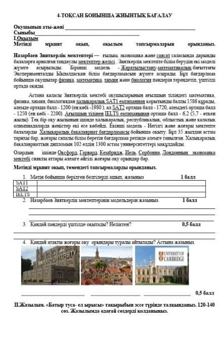 SAT2- орташа балл-1720, әлемдегі орташа балл- 1250 (ең көбі-2200)